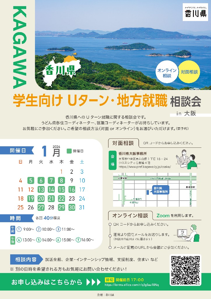 【1月・大阪】「香川県 学生向け Uターン・地方就職相談会」開催のお知らせ!