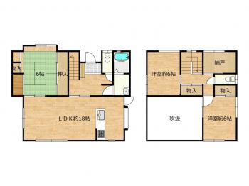 | 設備 | プロパンガス、電気、追焚機能、トイレ2ヶ所、温水洗浄便座、床下収納、システムキッチン、浄水器、洗髪洗 |