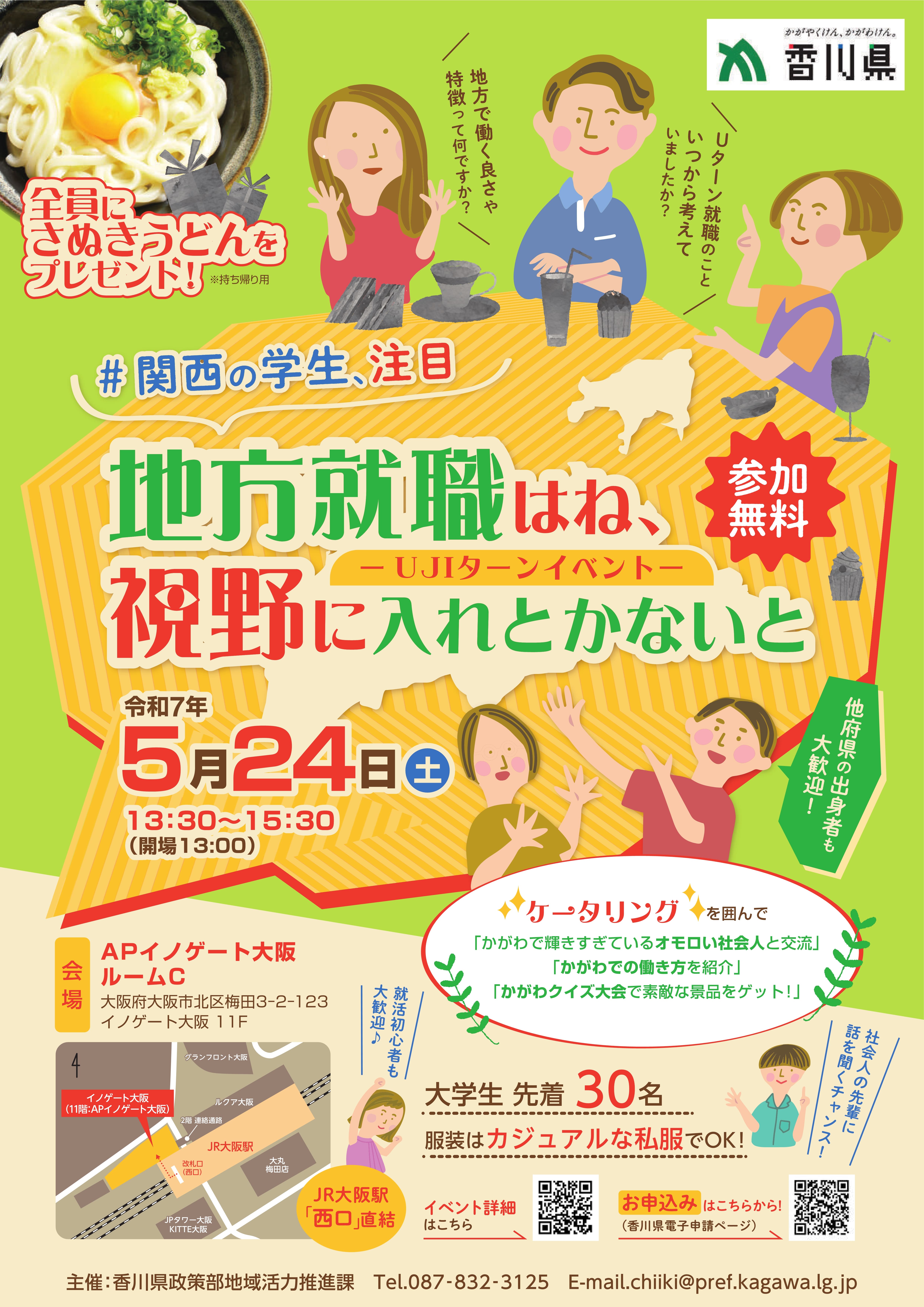 【5/24・大阪】【注目!】学生向け香川県UJIターンイベント「~地方就職はね、視野に入れとかないと~」を開催します!